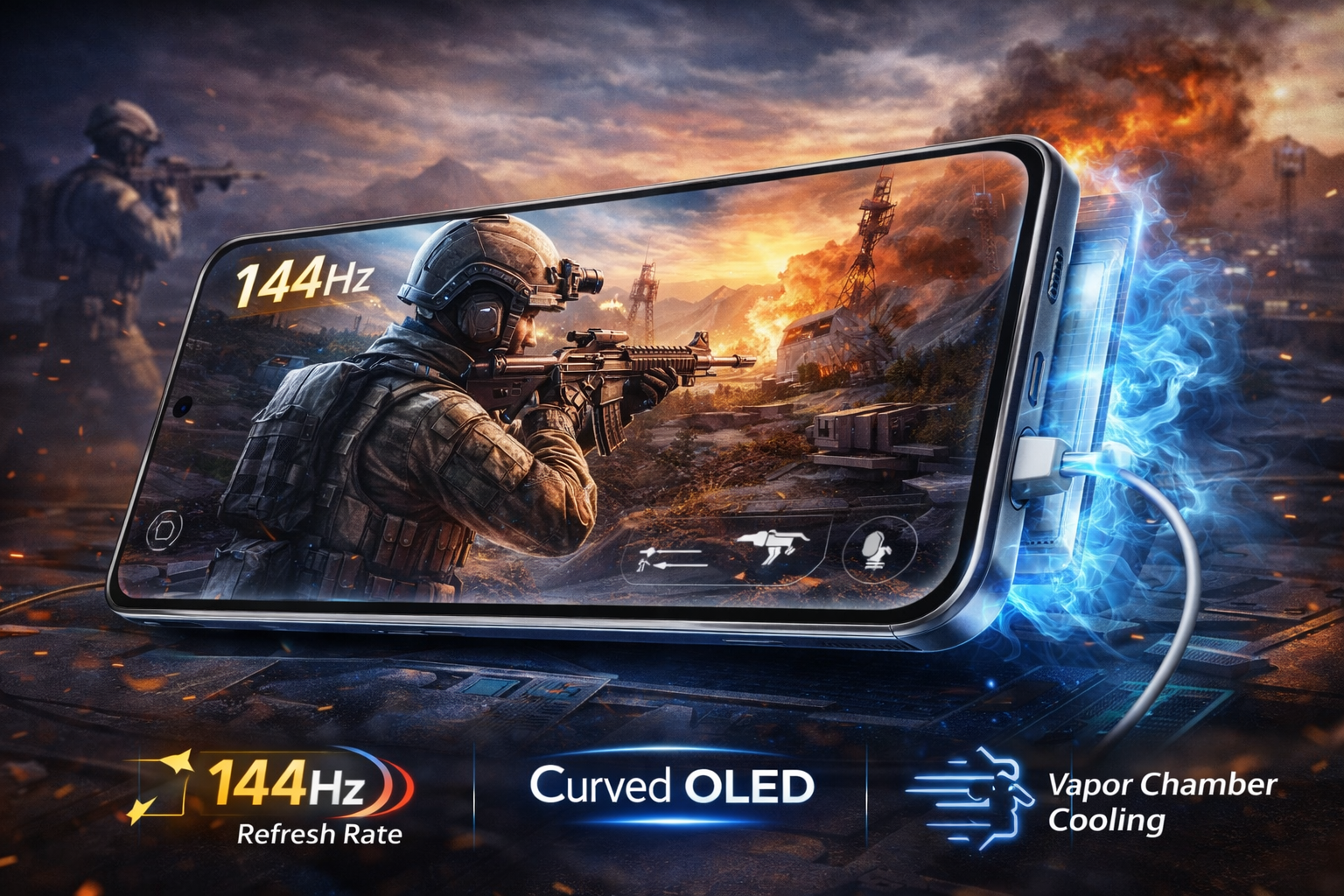 Realme P4 Power 5G gaming experience on 144Hz curved OLED display with vapor chamber cooling for long gaming sessions without overheating